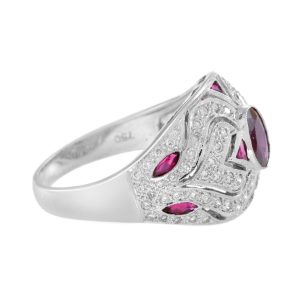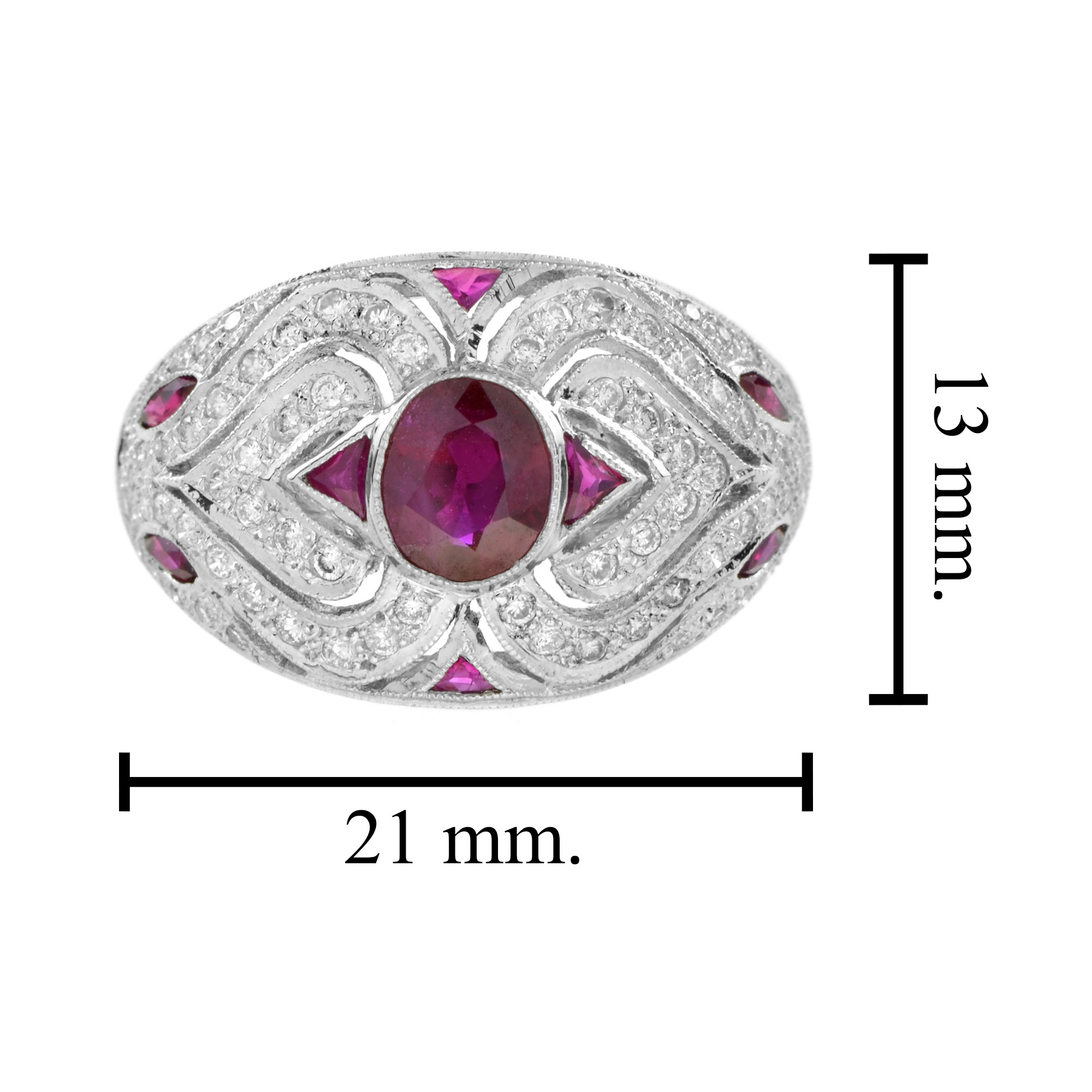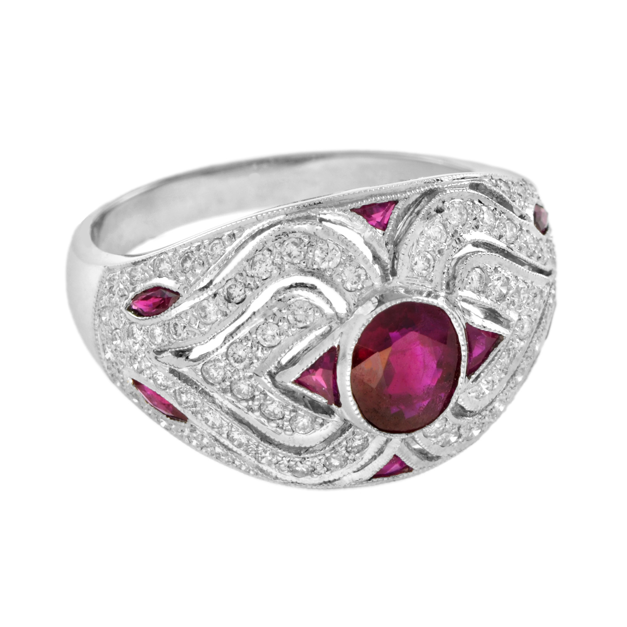 Art Deco Style Ruby and Diamond Bombe Ring