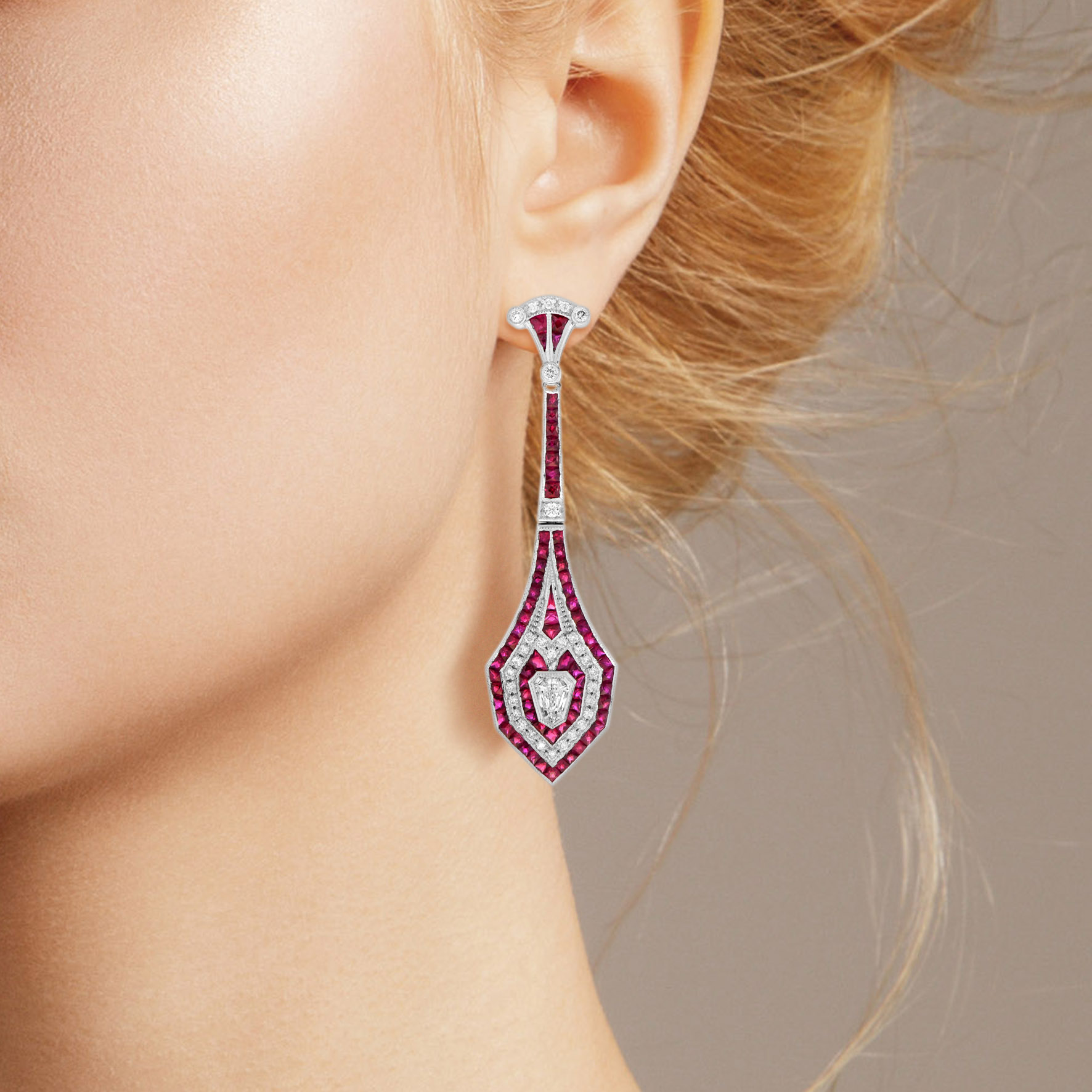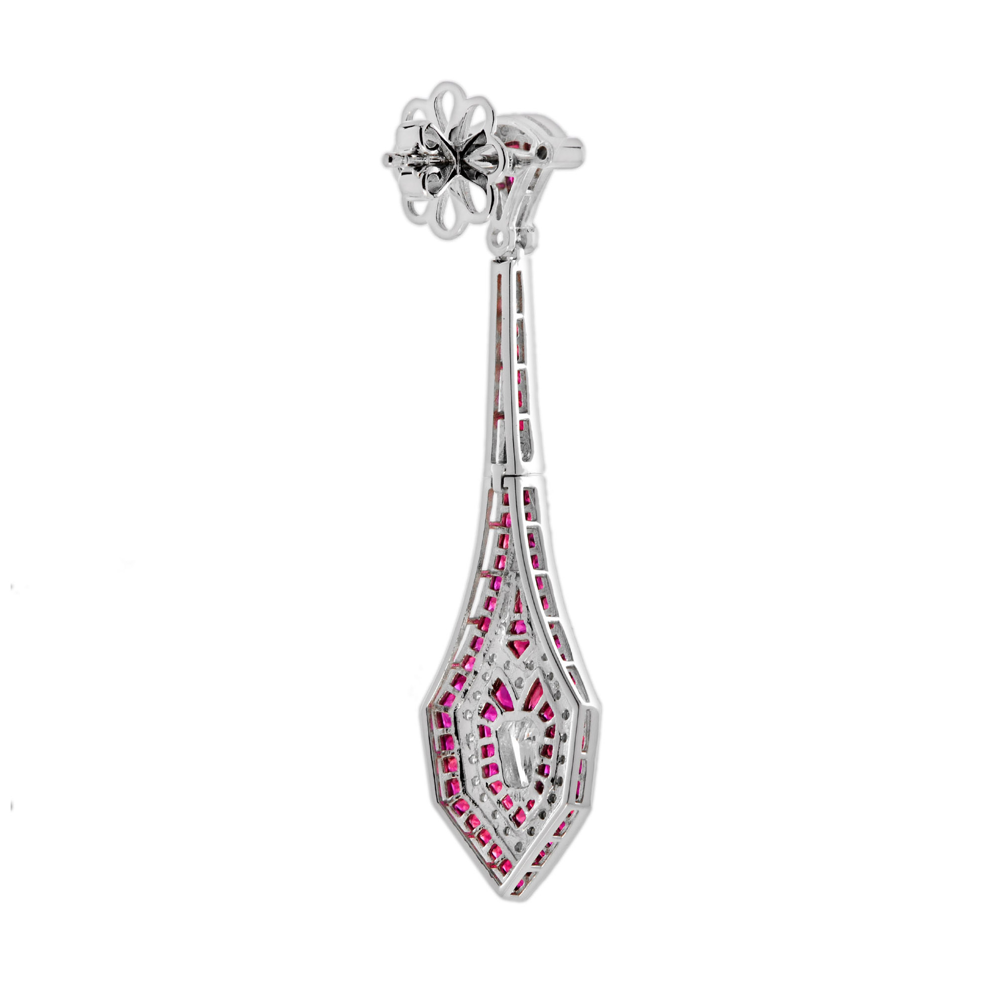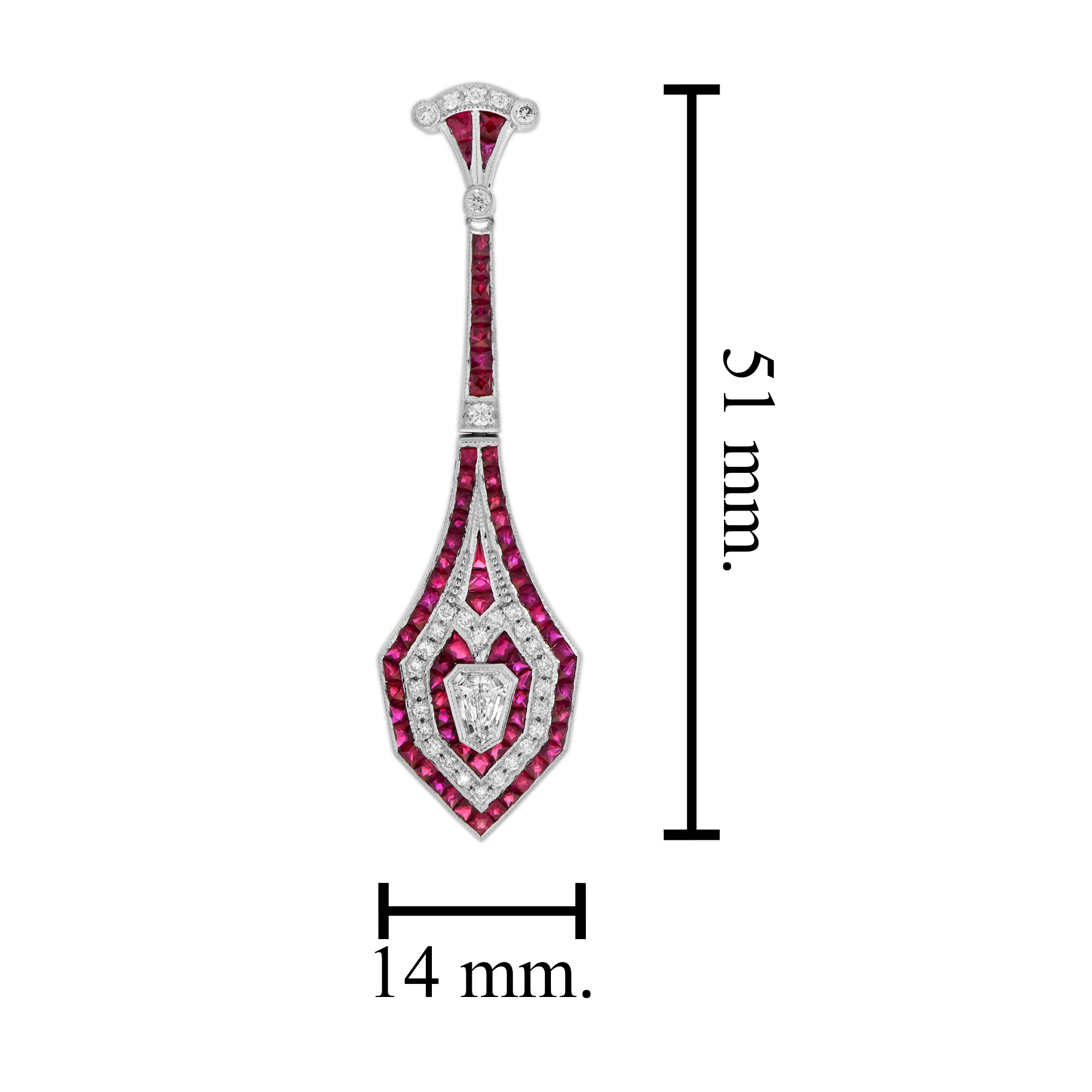 Bullet Shape Diamond and Ruby Art Deco Style Drop Earrings