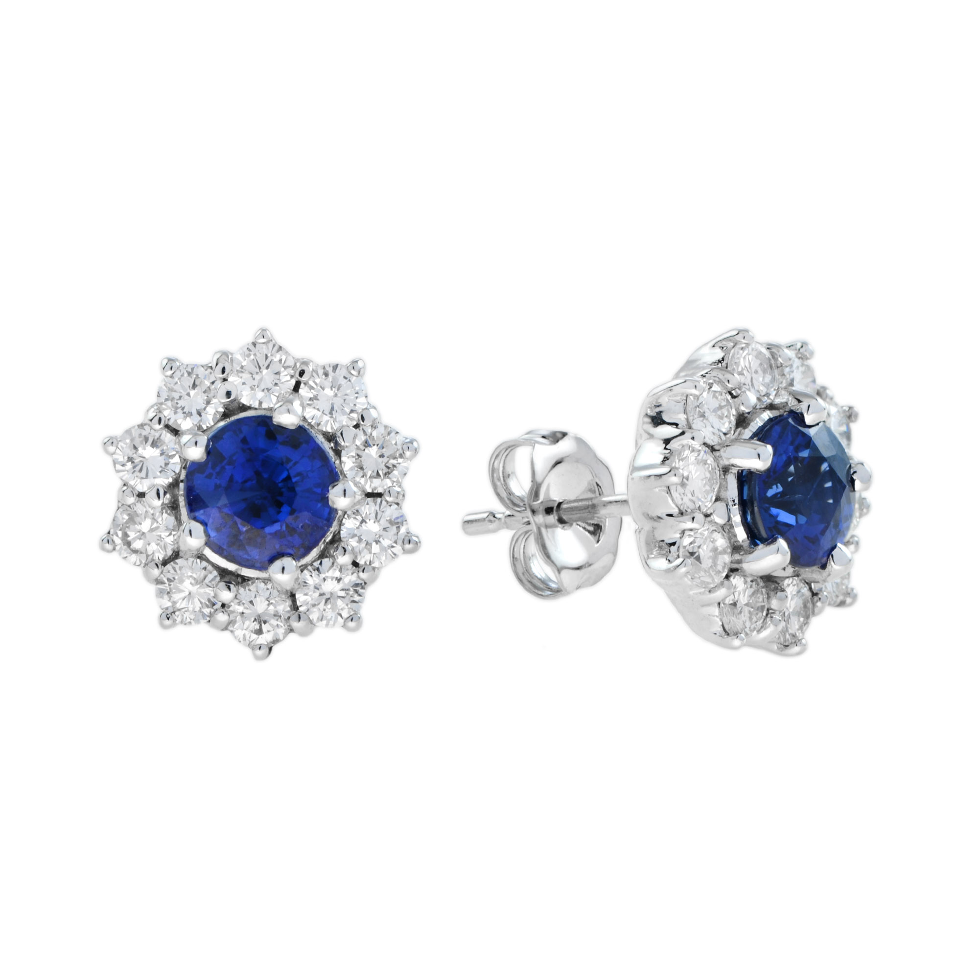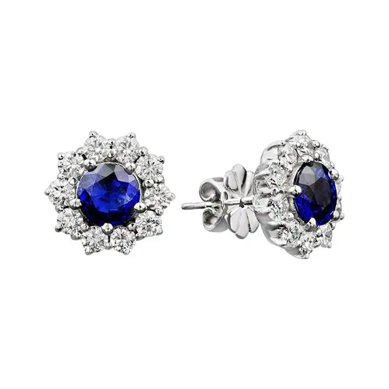 Add a touch of elegance with the Round Cut Ceylon Sapphire and Diamond Halo Classic Stud Earrings. The captivating round-cut Ceylon sapphire sits at the center, surrounded by brilliant diamonds, resembling a blooming flower. This exquisite design blends vibrant color and timeless beauty, making these earrings a perfect statement piece for any occasion. Shine with sophistication and grace, letting the brilliance of these earrings elevate your style to new heights.