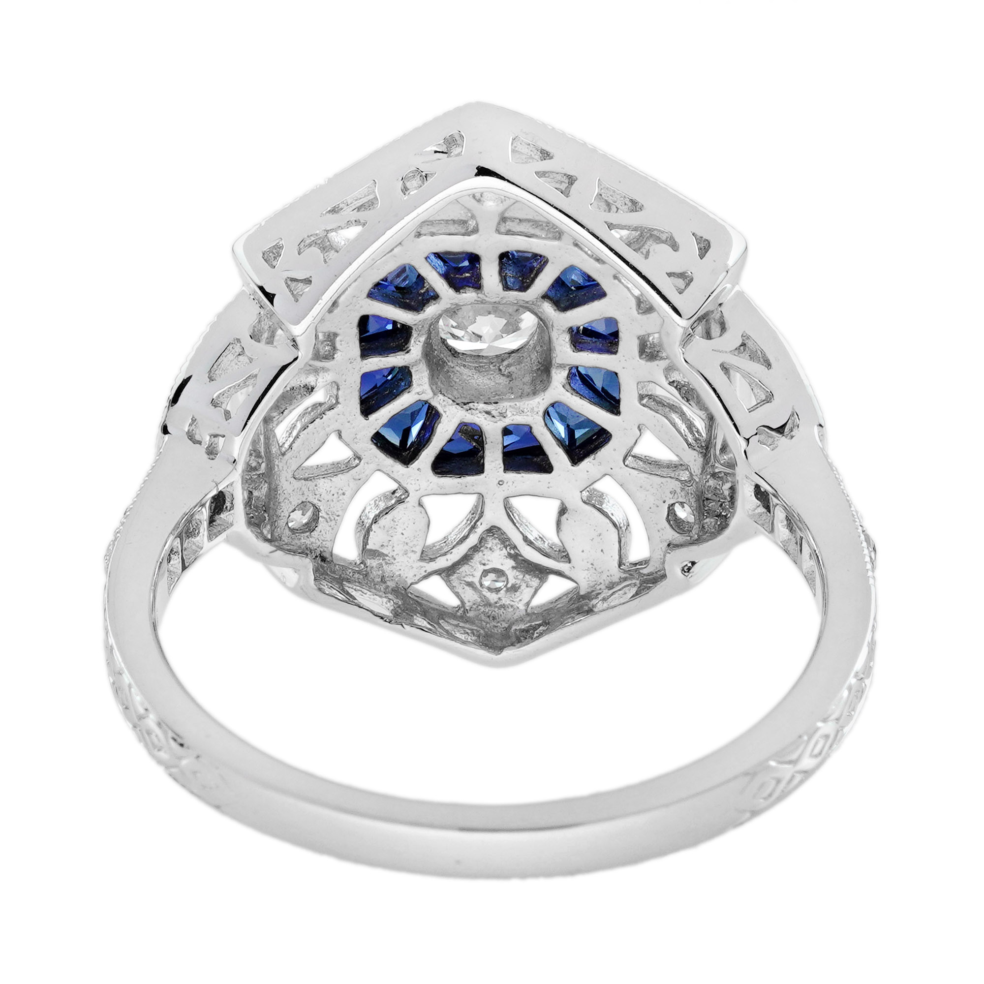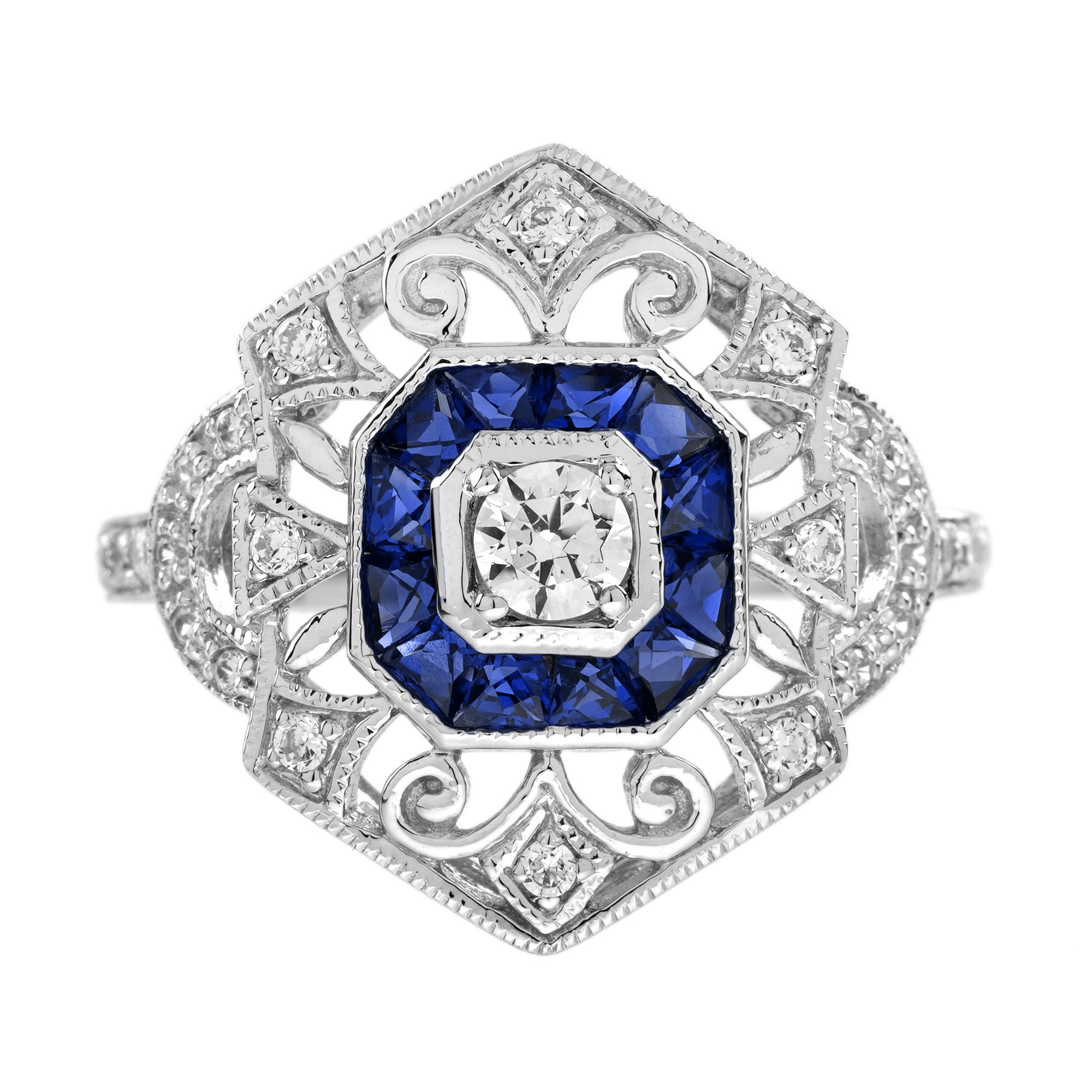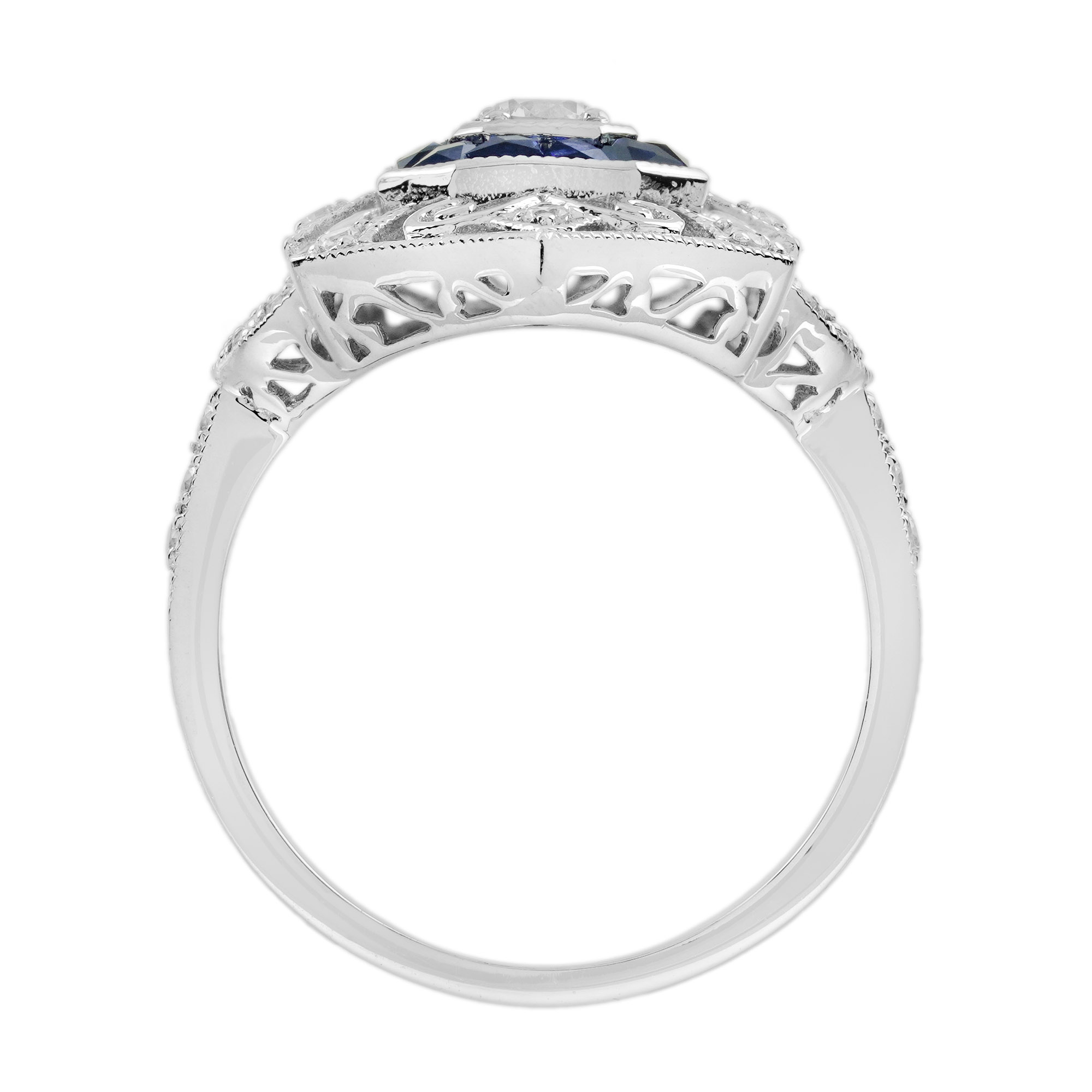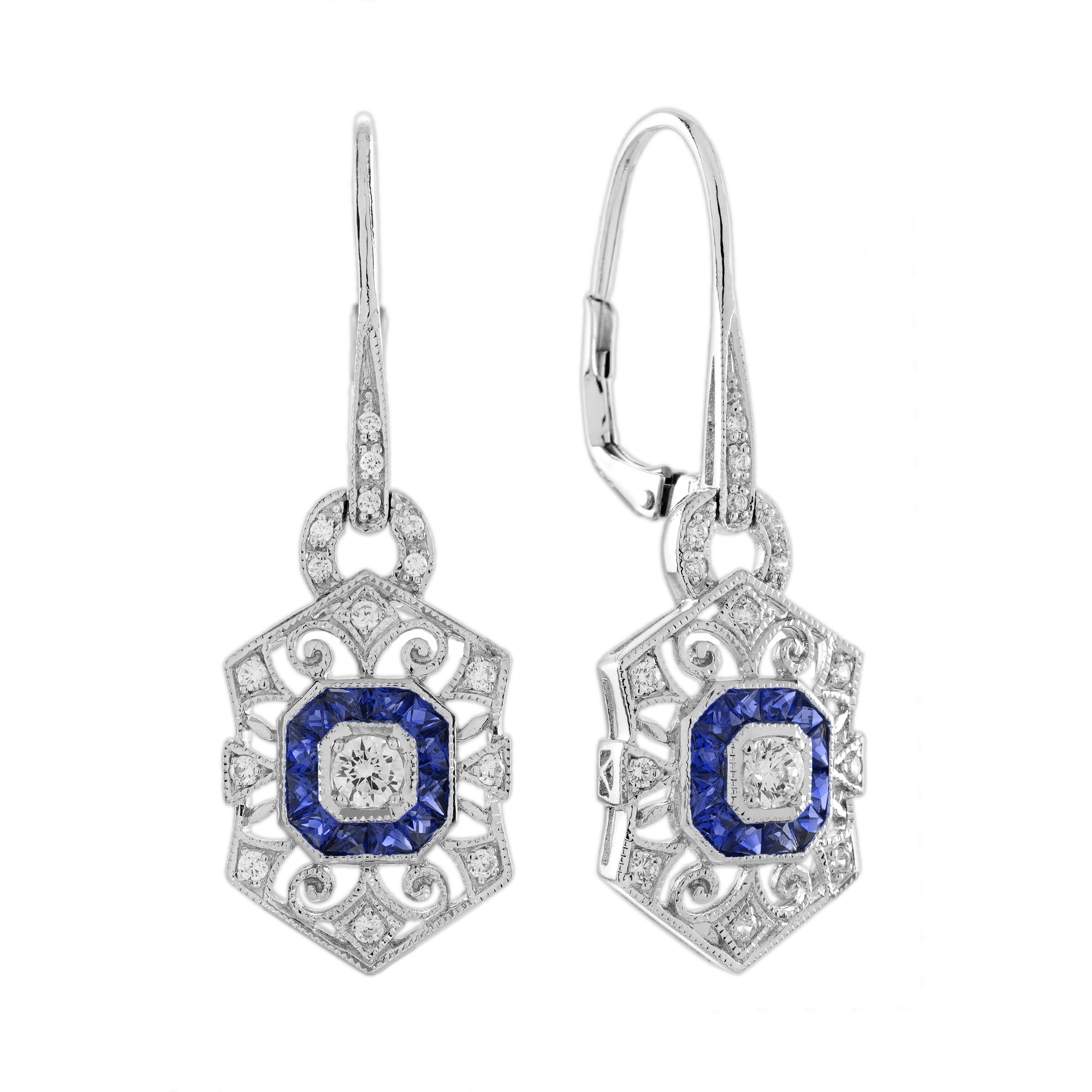 Elevate your elegance with this stunning Diamond and Sapphire Art Deco Jewelry Set. Featuring a brilliant diamond and vivid blue sapphires, the ring’s sleek design exudes timeless sophistication. The matching drop earrings with geometric detailing add a touch of vintage glamour, perfect for any special occasion. Crafted in white gold, this set combines luxury, artistry, and sparkle for an unforgettable statement. Make a lasting impression with this exquisite Art Deco masterpiece.