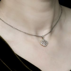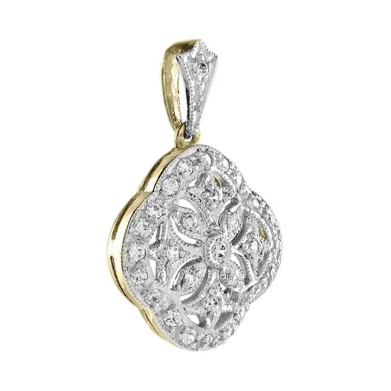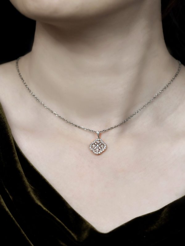 This floral pendant is adorned with sparkling diamonds that radiate timeless beauty.