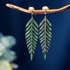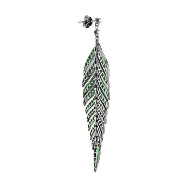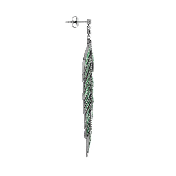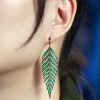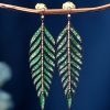 Green Emerald and Diamond Leaf Antique Style Dangle Earrings