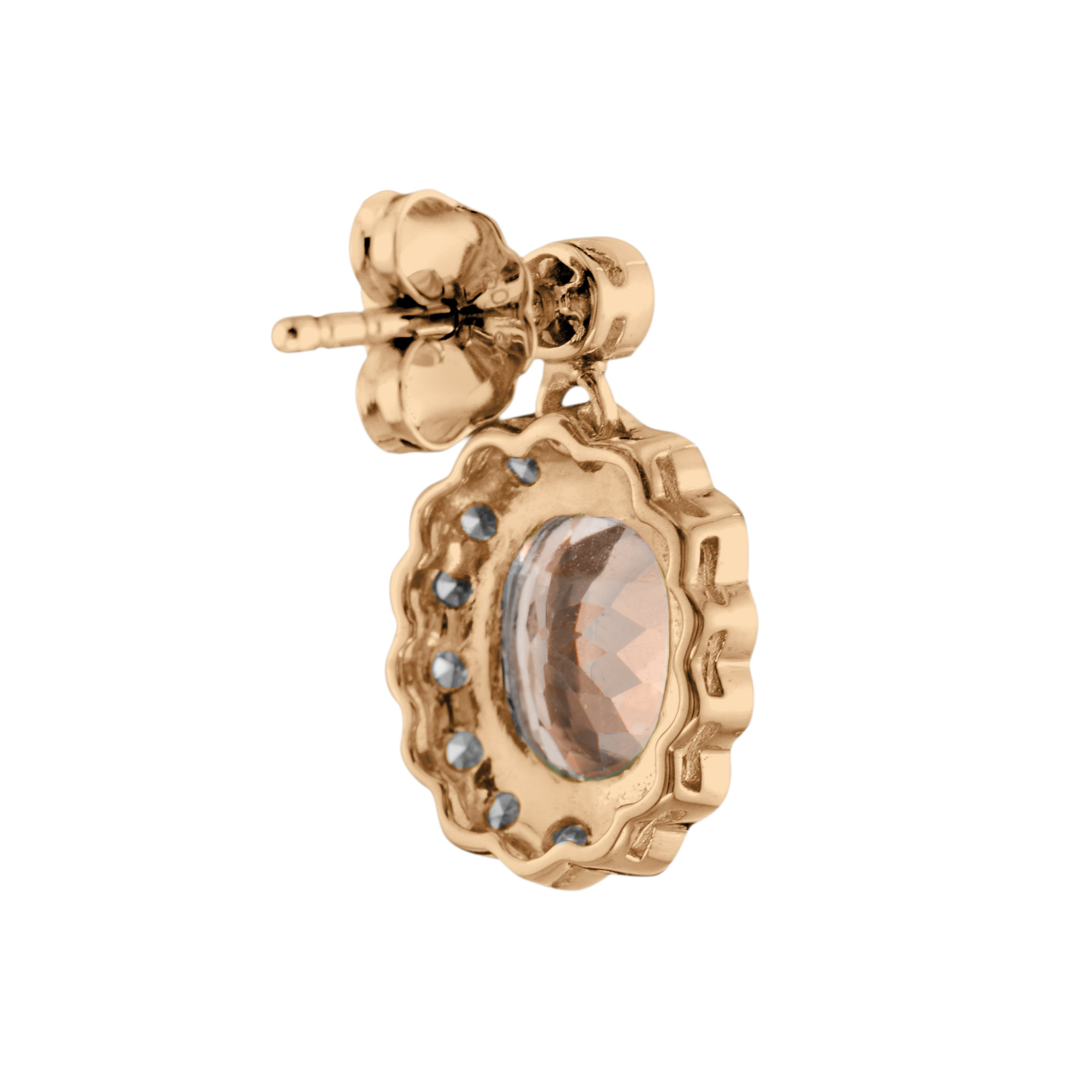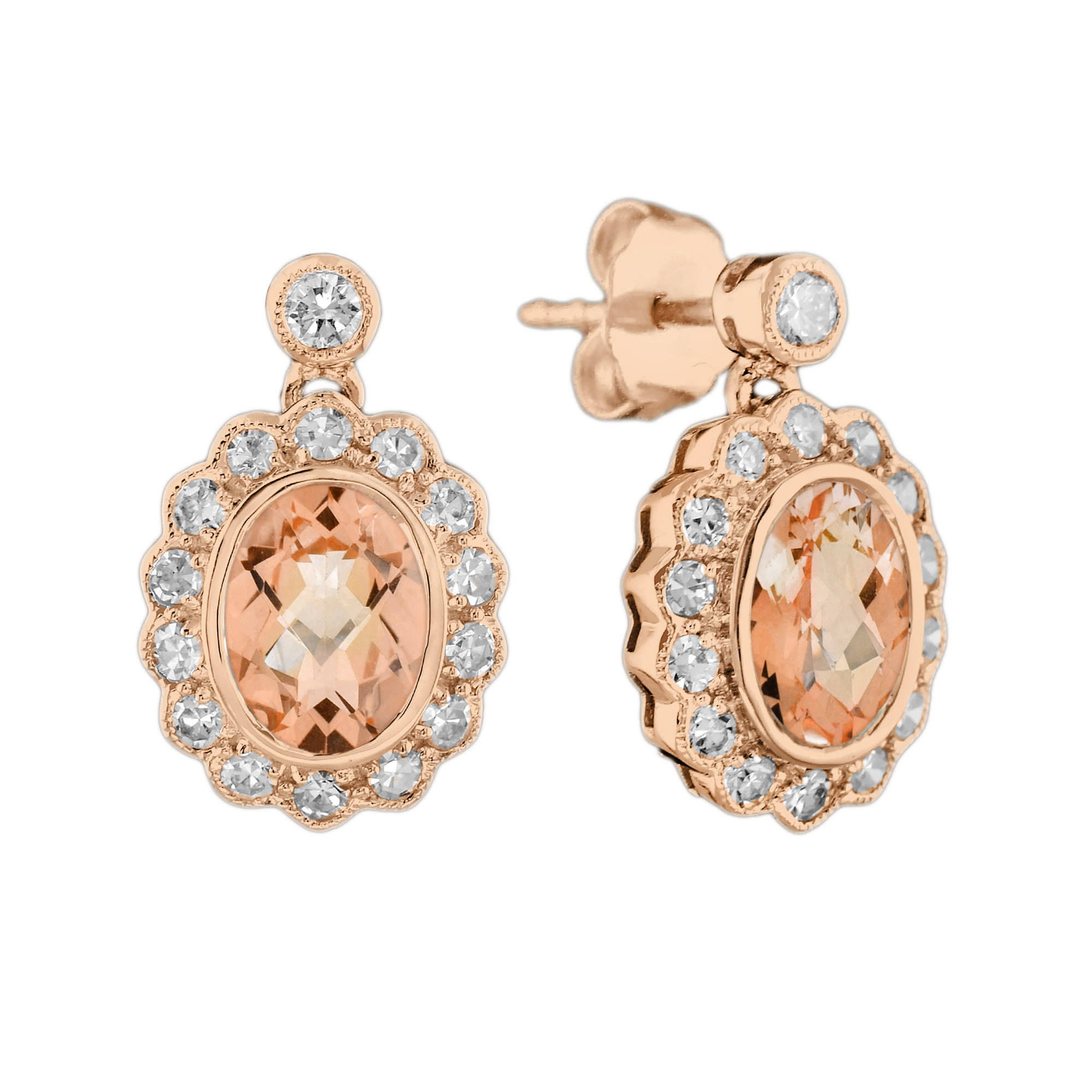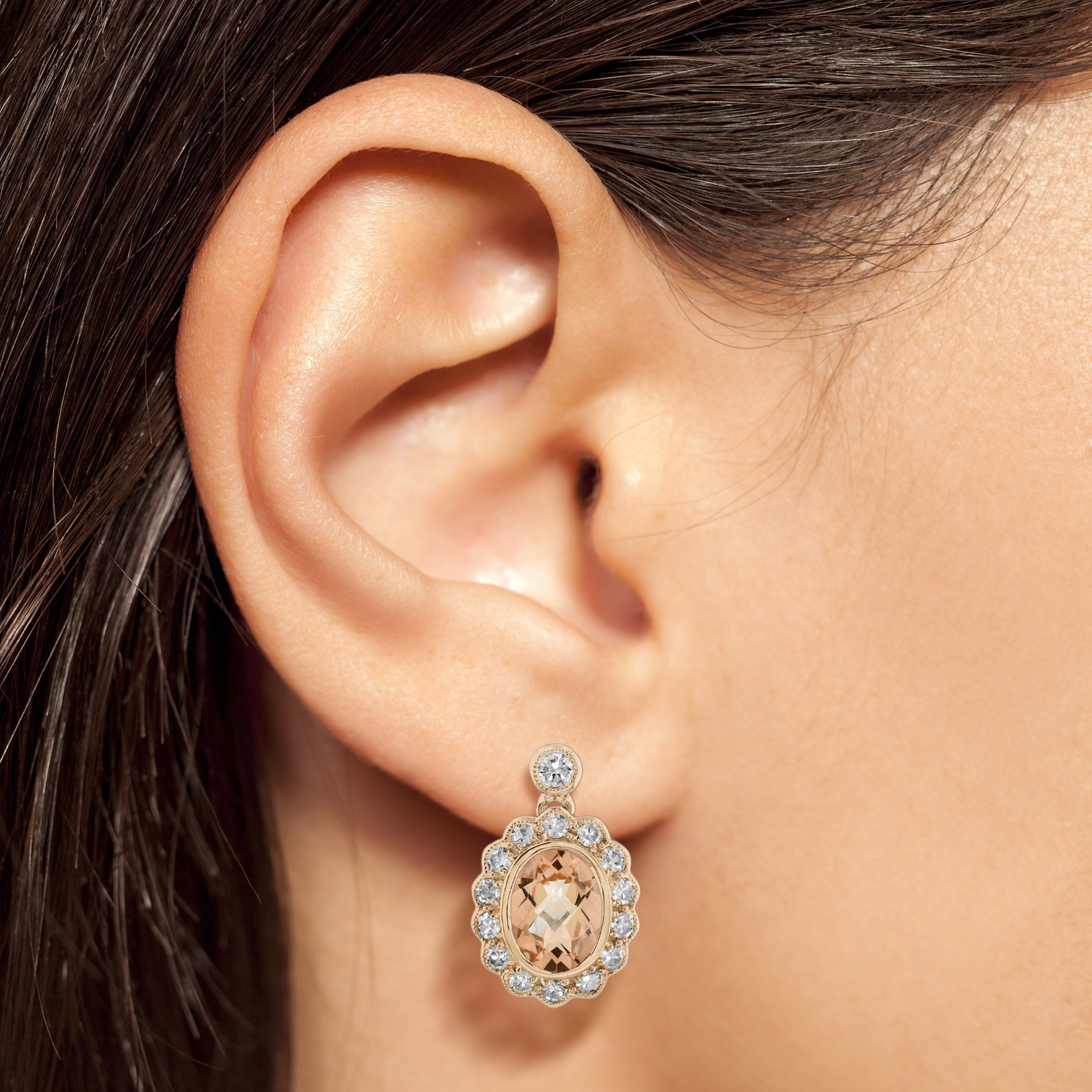 With their feminine peach color morganite with total of approximate 0.68 carat diamond accent, they bring vintage glamour to any outfit and are an excellent choice for gift giving.