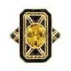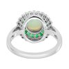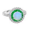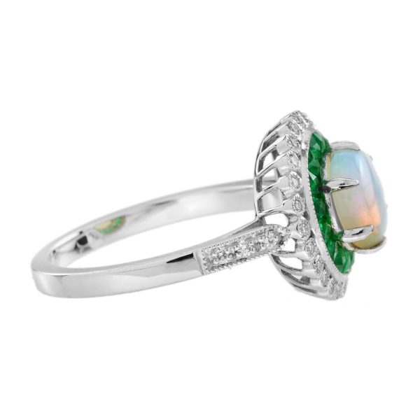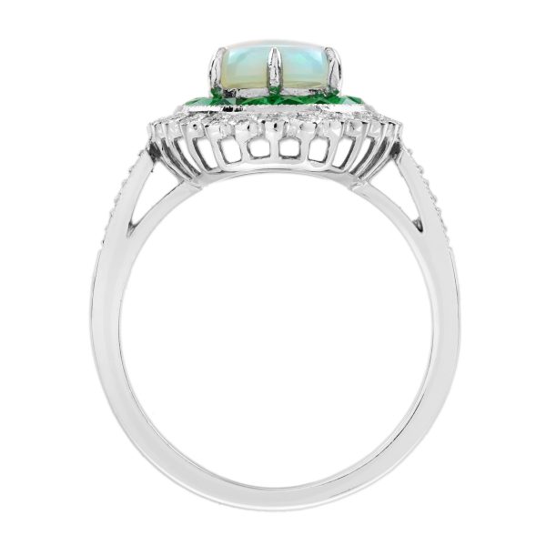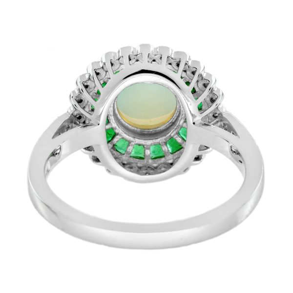 Opal Emerald and Diamond Art Deco Style Target Engagement Ring