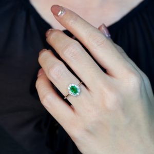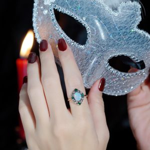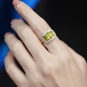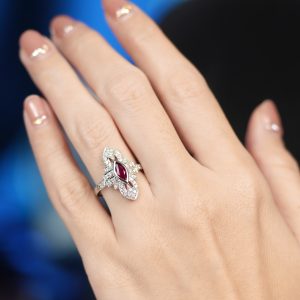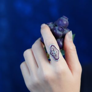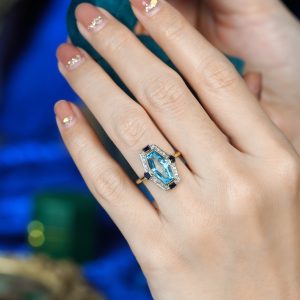 Elongated Hexagon Blue Topaz Diamond Sapphire Art Deco Style Ring